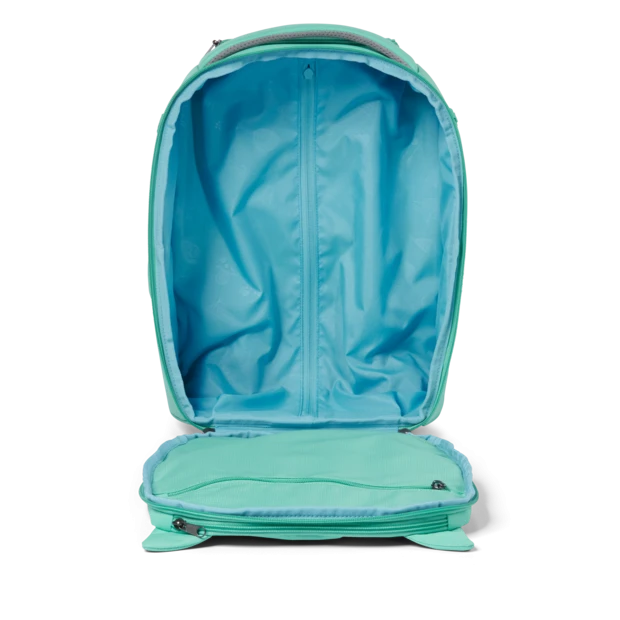 – Platz satt. Der Bauch des Rucksacks hat Raum für nützliche Dinge, wie zum Beispiel Taschentücher oder Tannenzapfen.