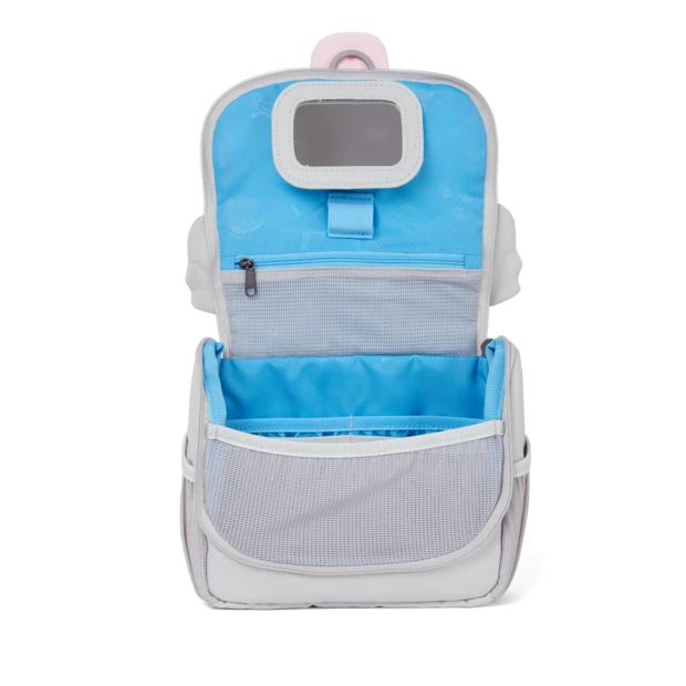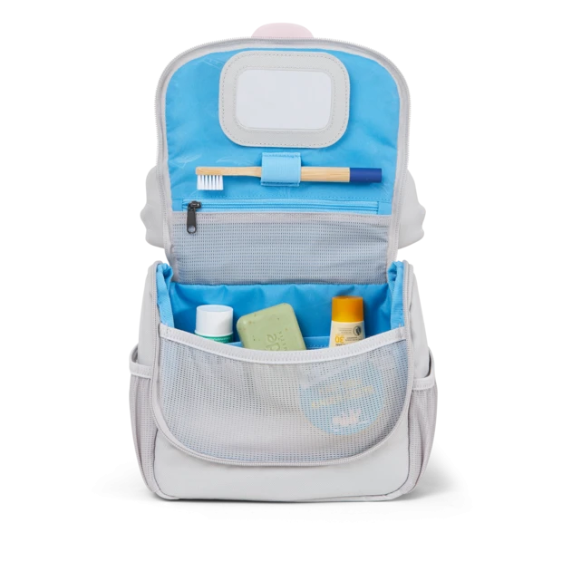 – Im inneren der Kulturtasche verbirgt sich eine Mesh-Tasche. Sehr praktisch: Kleine Dinge sind direkt sichtbar und gehen nicht verloren