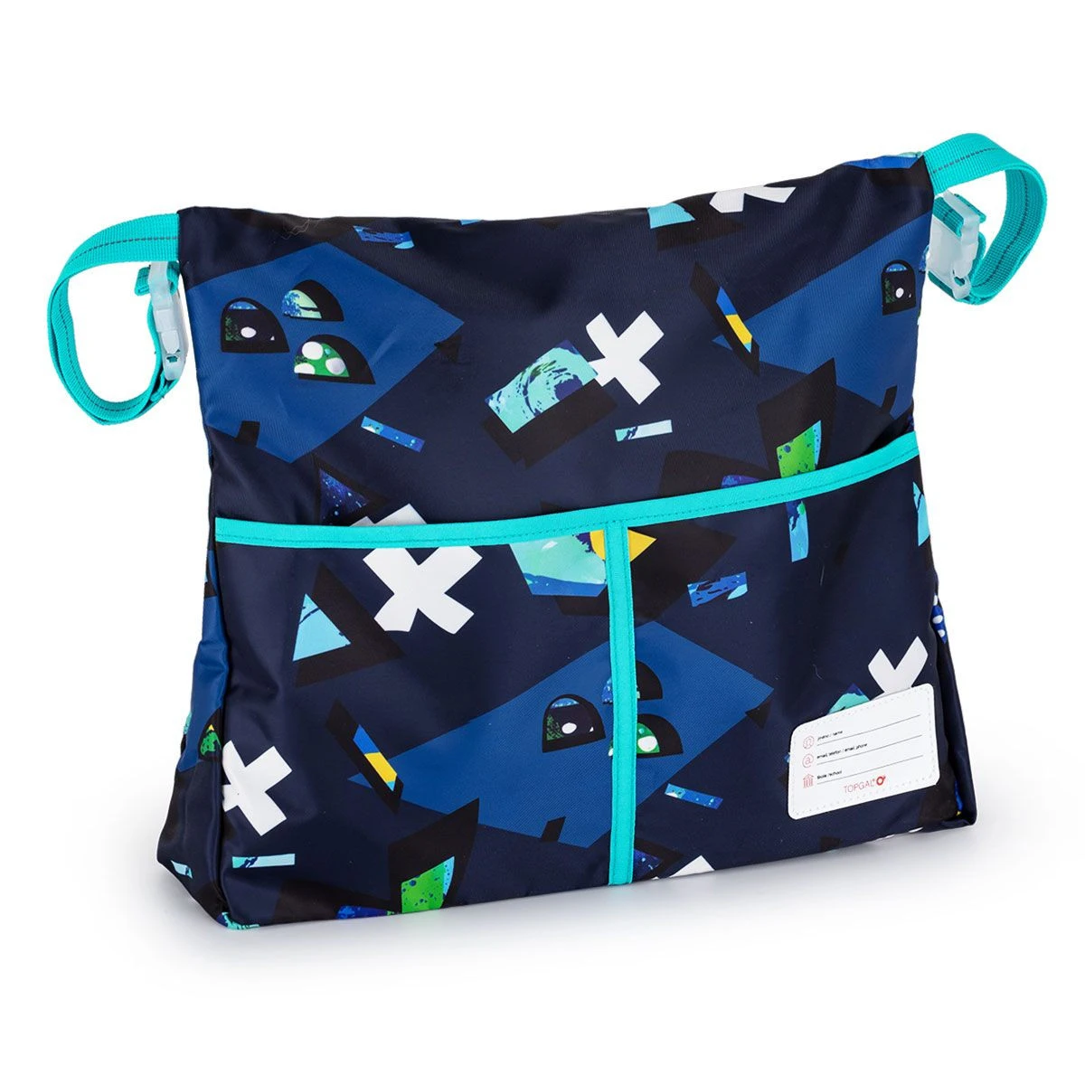 Eine einfache Banktasche aus hochwertigem und festem Material. Mit einer großen und zwei kleineren Taschen so konzipiert, dass sie die kleinen Dinge jedes Schülers (Aquarellfarben und andere Schulsachen) verstauen können. Die obere große Tasche lässt sich mit einem Reißverschluss verschließen, zwei Seitentaschen sind frei zugänglich. Die Tasche ist mit einem Namensschild und mit Riemen mit Schnallen zur Befestigung an der Bank ausgestattet.