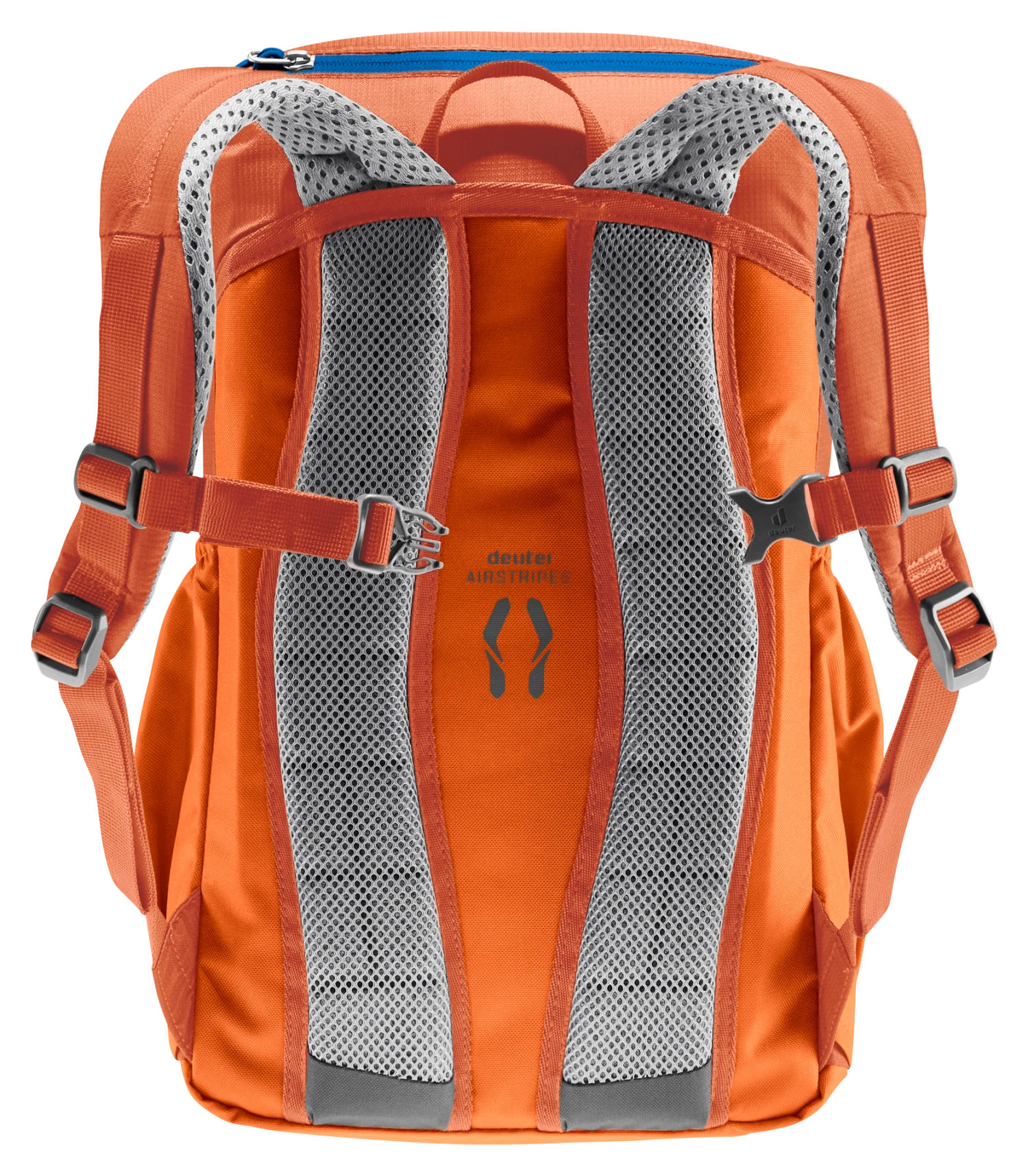 Beim Junior sorgt das bewährte Airstripes Rückensystem für eine gute Belüftung. Die S-förmigen Schulterträger mit Soft-Edge-Abschlüssen bringen den Tragekomfort und der Brustgurt hält den Rucksack an Ort und Stelle, auch bei schnellen Bewegungen. Neben dem geräumigen Innenfach bieten die elastische Frontstecktasche und die zwei Seitentaschen zusätzlichen Platz für Ausrüstung. Das extra robuste, recycelte, PFC-freie Material aus dreizehn 0,5 Liter PET Flaschen macht das mit dem Grünen Knopf zertifizierte bluesign® Produkt zur praktischen Begleitung auf Entdeckungsstreifzügen durch die Natur.