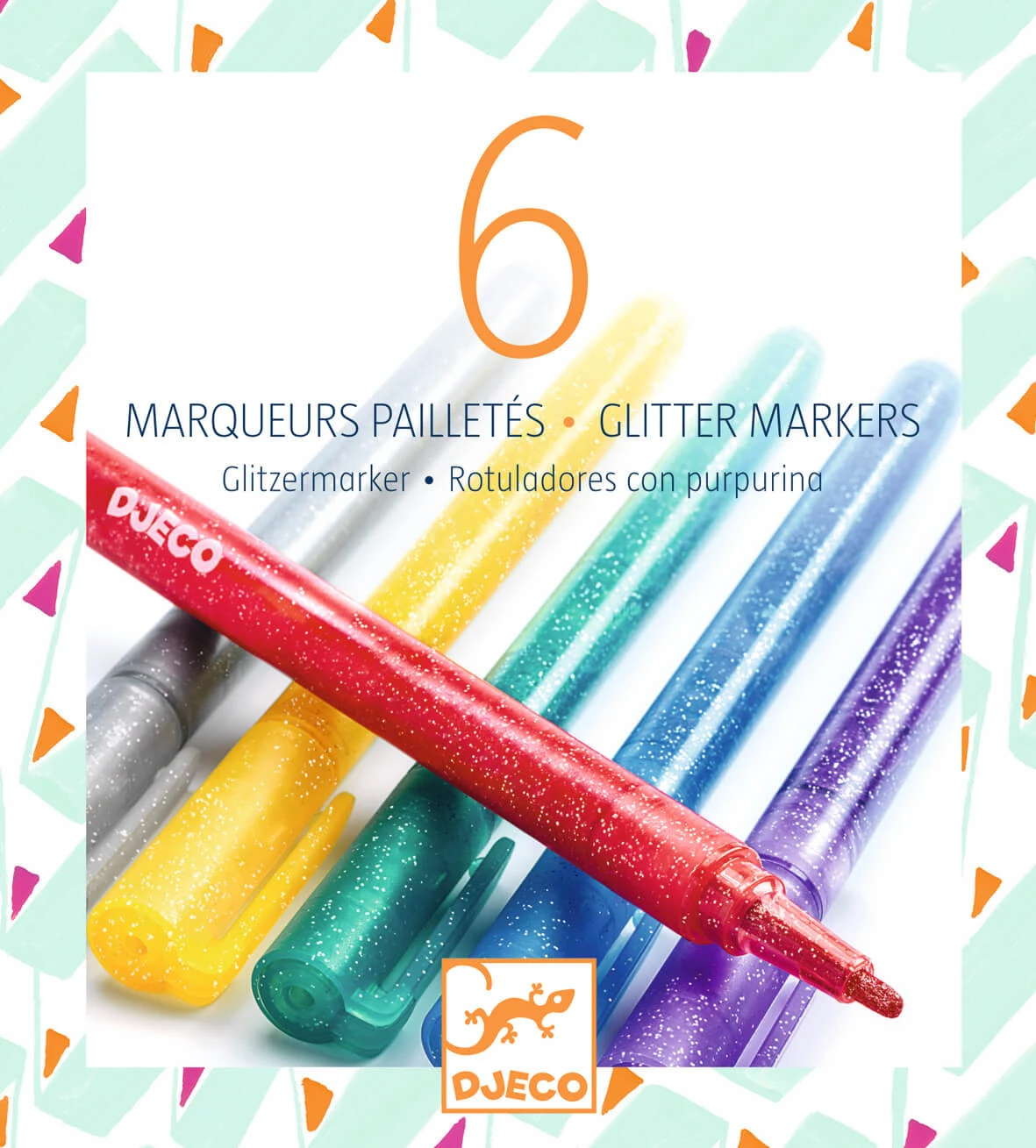Ein Set aus 6 Glitter Markern zur Verschönerung von Kunstwerken!