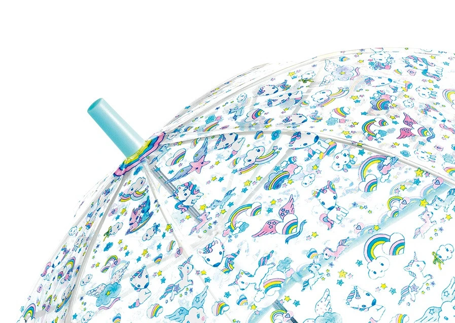 Regenschirm in sanften Farben und mit süßen Figuren im Regen. Da der Regenschirm transparent ist, kann das Kind gut sehen, wohin es läuft. Mit seiner manuellen Öffnung mit Schutzsystem kann der Regenschirm geöffnet und geschlossen werden, ohne sich die Finger einzuklemmen. Farbenfrohes Accessoire – ideal, um Spaziergänge im Regen zu verschönern!