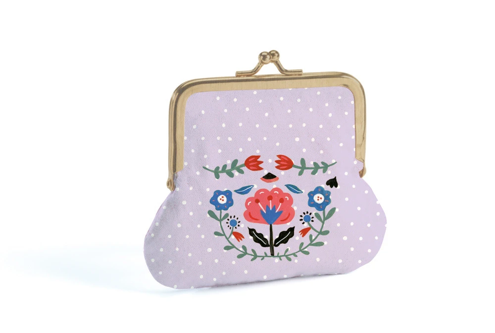 Ein Portemonnaie mit hübschen, glitzernden Illustrationen und einem Retro-Verschluss zum Verstauen von kleinen Ersparnissen.