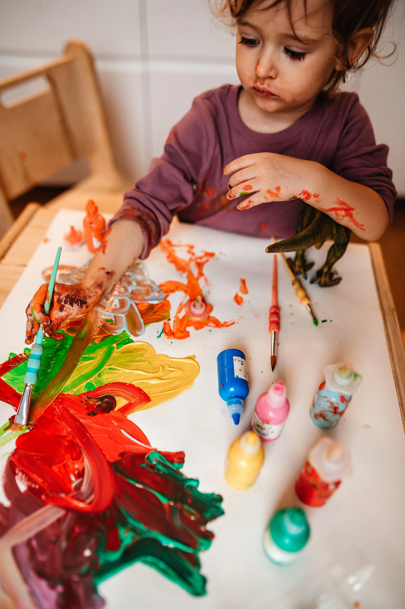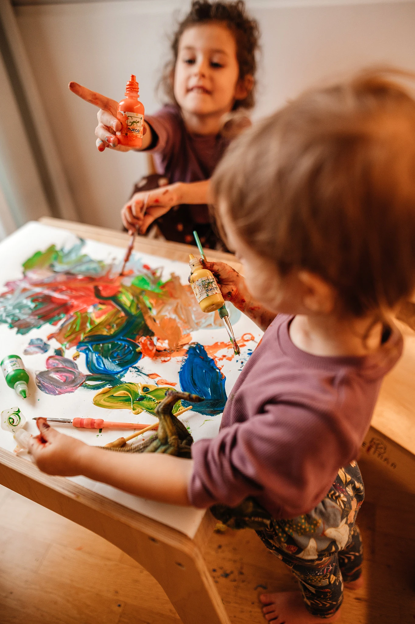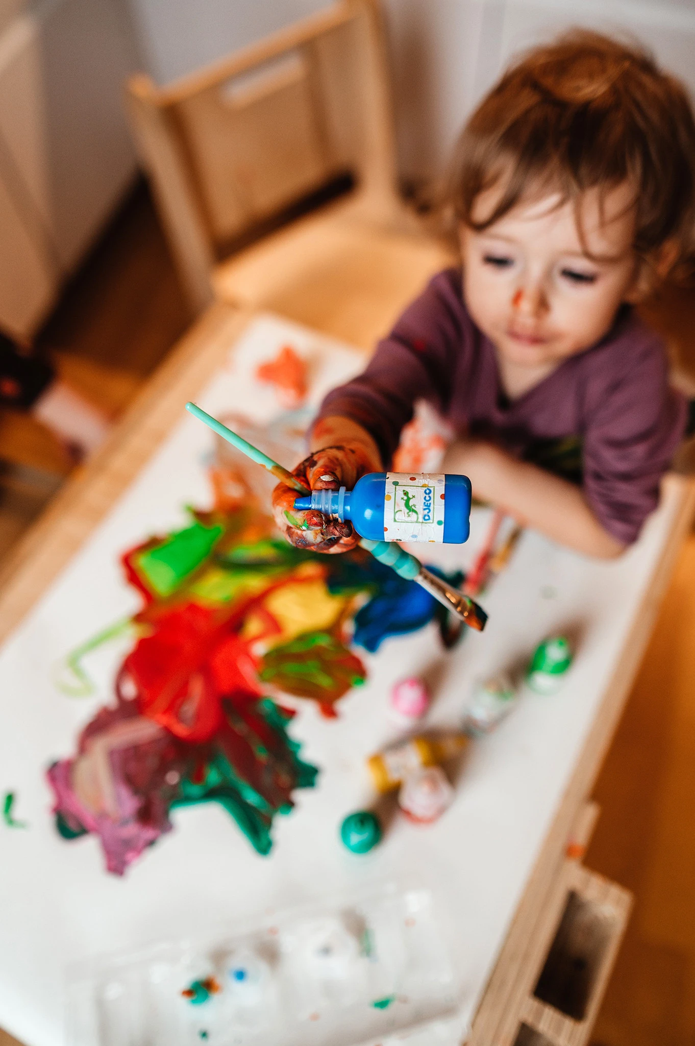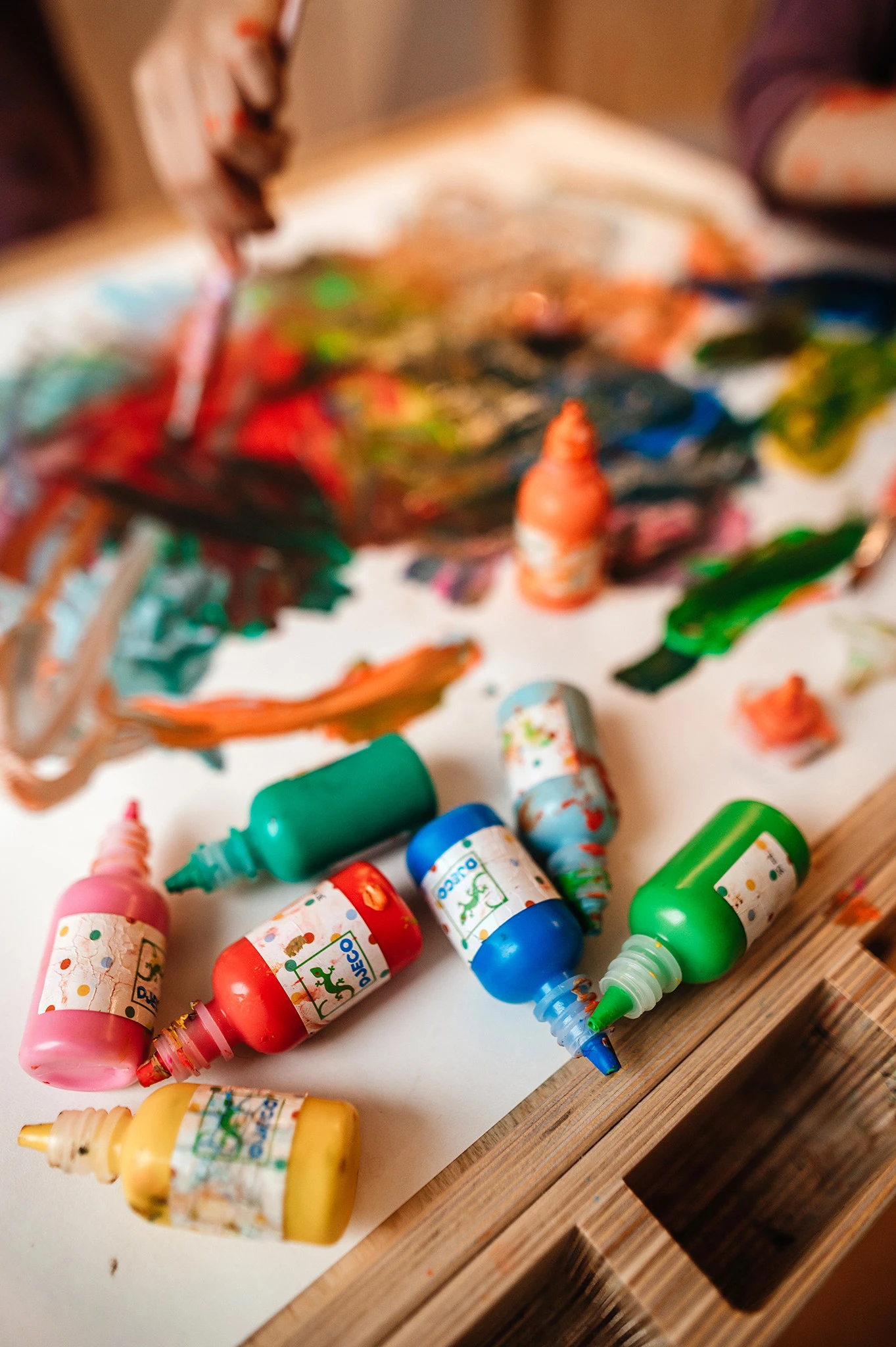 Set mit Temperafarben in Plastikflaschen. Die Packung enthält 8 Farben, Pinsel und Palette. Für Kinder ab 3 Jahren. Die Abmessungen betragen 26 x 11 x 3 cm.