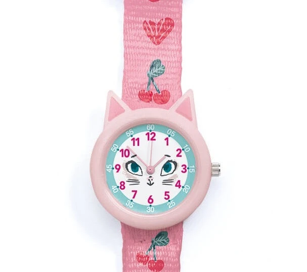 Elegante Quarzuhr mit schönem Katzenmotiv zum Uhr-Lesen-Lernen. Pädagogisch konzipierte Uhr mit zwei unterschiedlichen Zifferblättern (das eine für die Stunden, das andere für die Minuten) und dünnen Zeigern zum einfachen Ablesen der Uhrzeit. Dank des japanischen Uhrwerks Miyota 2035 bewegen sich die Uhrzeiger geräuschlos. Stoßfestes und bis zu einem Druck von 3 bar wasserdichtes Uhrgehäuse. Funktioniert mit 1 SR626SW-Batterie (im Lieferumfang enthalten).