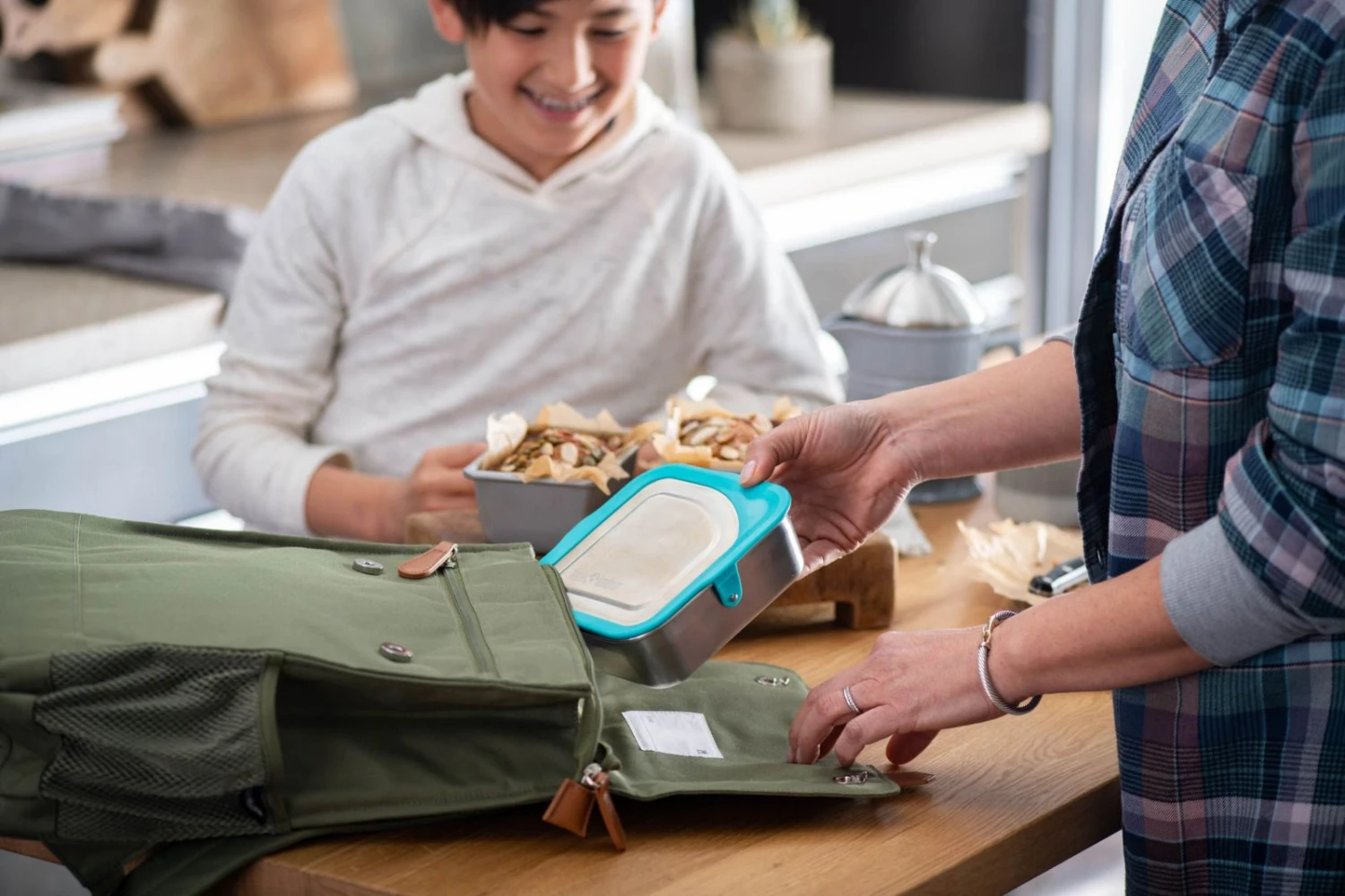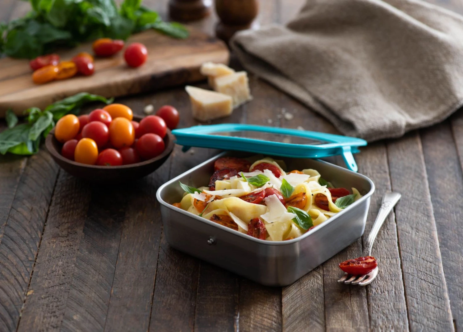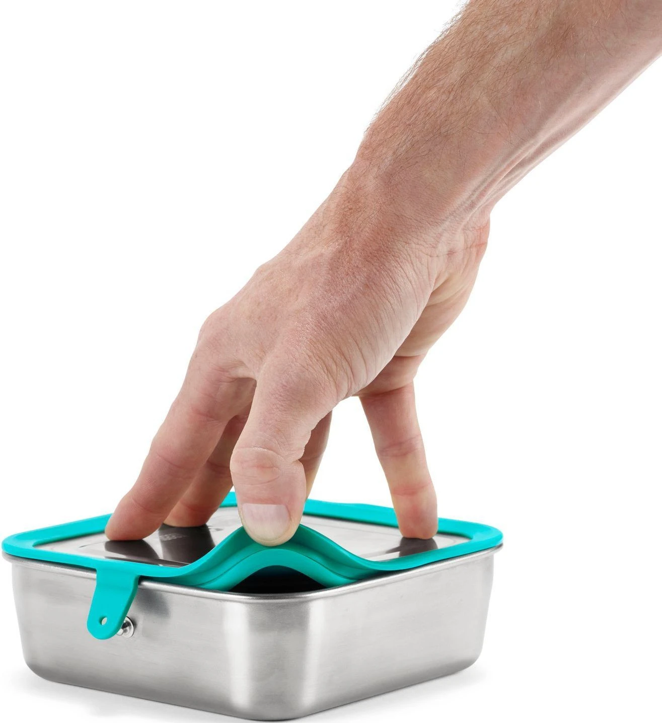Der Deckel mit Verschlusslaschen garantiert eine sichere Aufbewahrung und Transport der Lebensmittel – und das sogar komplett auslaufsicher! Dank einer flexiblen Ecklasche kann der Edelstahlbehälter entlüftet werden. Schnell in der Spülmaschine gereinigt ist die Lunchbox immer einsatzbereit. Mach Schluss mit Plastikboxen oder Styroporverpackungen, tue der Umwelt etwas Gutes!