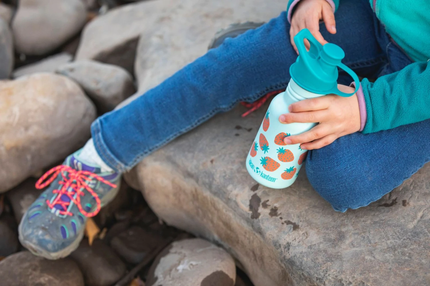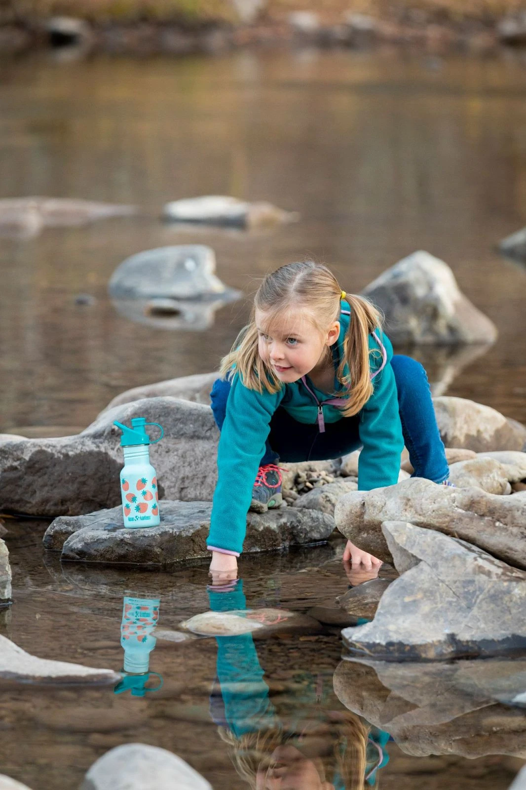 Unsere neuen Kid Kanteen Flaschen mit fabelhaft bunten Farben und Designs sind speziell für Kinder entwickelt. Die robuste Flasche mit 355ml Volumen und Sport Cap sollte bei keinem Ausflug fehlen. Farbe, Form und Größe sind wie für Kinder gemacht. Unsere neue Version ist etwas schmaler und kann somit noch besser von den kleinen Händchen gegriffen und gehalten werden. Überrasche deine Kleinen zum Geburtstag oder zur Einschulung mit dieser tollen Trinkflasche! Das Material und die Herstellung sind umweltfreundlich und nachhaltig. Der Edelstahl und Kunststoff sind BPA-frei, sowie geruchs- und geschmacksneutral. Das Sport Cap ist spülmaschinengeeignet und somit schnell zu reinigen. Es ermöglicht einen kleckerfreien und leichten Trinkfluss – aber bitte nicht liegend transportieren, da es nicht auslaufsicher ist. Am besten die Flasche mit Sport Cap immer separat mitführen, da auch Erschütterungen an der Lüftungs-Dichtung zu Flüssigkeitsverlust führen können. Mit einem Loop Cap aus Kunststoff oder Edelstahl ist die Flasche auslaufsicher.