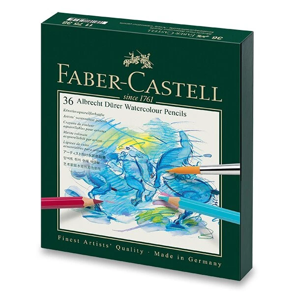 Albrecht Dürer Künstleraquarellstifte ermöglichen dem Künstler eine vielseitige Ausdrucksweise im Zeichnen, Malen und Aquarellieren. Hochwertige Materialien und die über 250-jährige Erfahrung von Faber-Castell sorgen dafür, dass diese Aquarellbuntstifte in ihrer Leuchtkraft und Aquarellierbarkeit unübertroffen sind. Schon mit wenigen Pinselstrichen lässt sich der Farbauftrag nachträglich fein oder flächig vermalen und entfaltet dabei seine volle, einzigartige Farbkraft. Je nach verwendetem Papier lässt sich der Farbauftrag vollständig auflösen und verhält sich dann wie die klassische Aquarellfarbe.