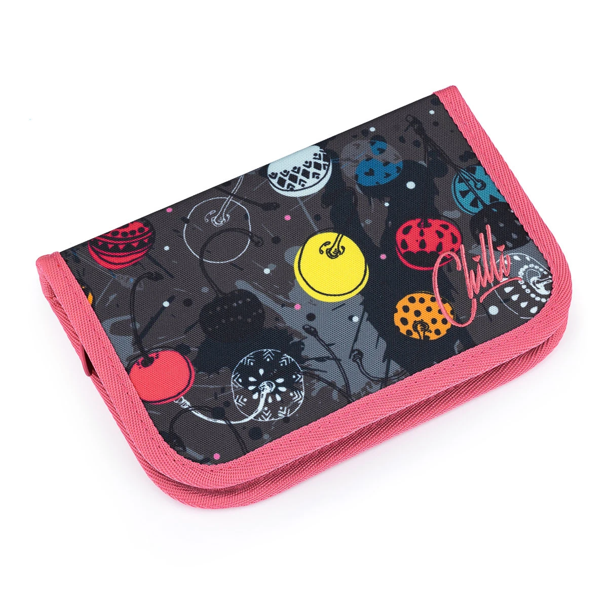 Das einstöckige Federmäppchen mit zwei Klappen ist mit 18 klassischen Gummigriffen für Buntstifte und Marker, 4 breiteren Griffen für Lineal, Zirkel oder Schere und zwei größeren Griffen für Gummi und Spitzer ausgestattet. Unter der Klappe aus transparenter Folie befindet sich ein Stundenplan.