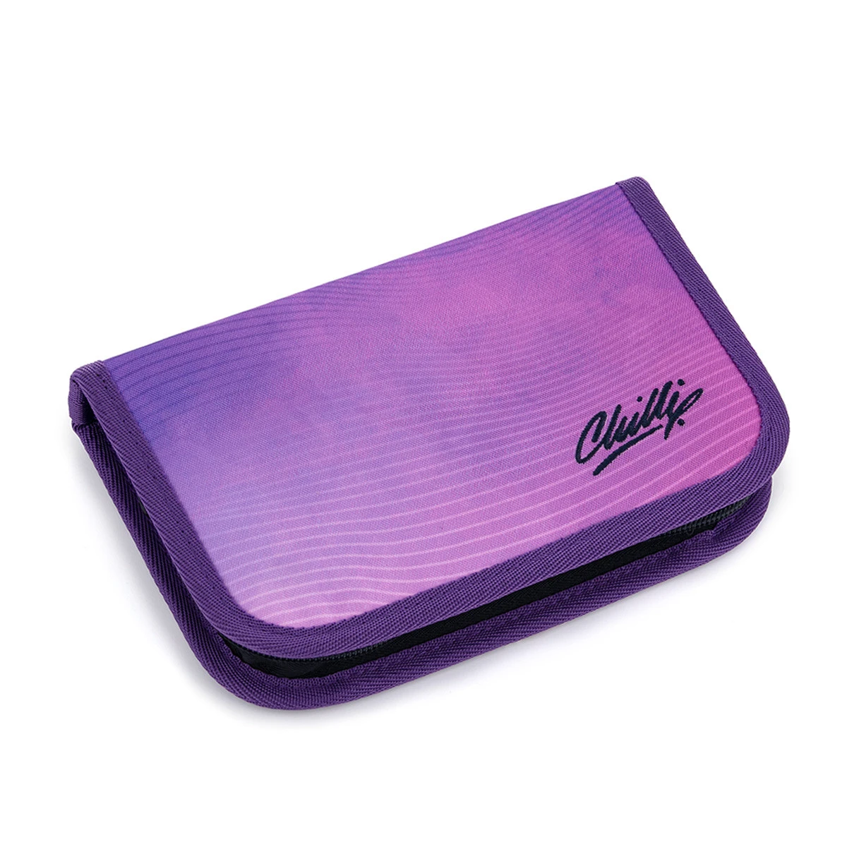 Das einstöckige Federmäppchen mit zwei Klappen ist mit 21 klassischen Gummigriffen für Buntstifte und Marker, drei breiteren Griffen für Lineal, Zirkel oder Schere und zwei größeren Griffen für Gummi und Spitzer ausgestattet. Unter der Klappe aus transparenter Folie befindet sich ein Stundenplan, der zweite wird z.B. auch für Zugbänder verwendet 🙂