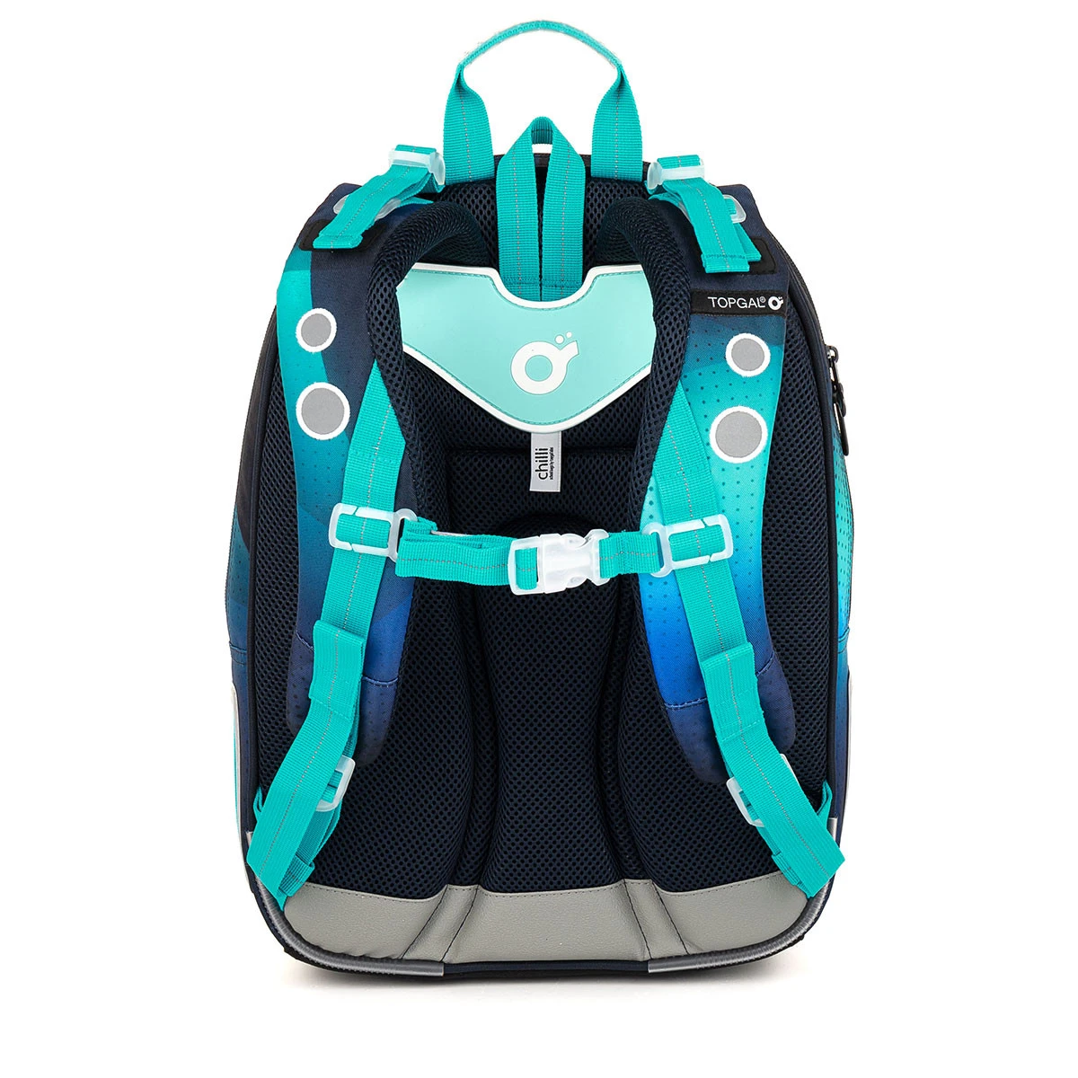 Der blaue Schulrucksack ala Lichtbrechung ist für alle Jungen (aber auch Mädchen) über 125 cm geeignet. Das Modell MIRA mit zwei Kammern und seinem Volumen ist mindestens bis zur fünften Klasse geeignet. Die blaue Farbe wird jeden Schultag aufhellen. Der Rücken des MIRA-Rucksacks ist gepolstert, anatomisch geformt und mit Aluminiumverstärkungen versehen. Die Verstärkung reißt nicht aus, ist leicht, hält die Form des Rückensystems und fördert die Luftzirkulation zwischen dem Rücken und dem Rucksack. Die Schultergurte sind gepolstert, anatomisch geformt und an der Unter- und Oberseite verstellbar. Der höhenverstellbare Brustgurt sorgt dafür, dass der Rucksack auch bei kleineren Schulkindern nicht von den Schultern rutscht.
