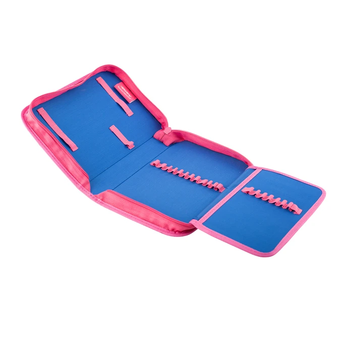 Das Federmäppchen für kleine Schulkinder hat eine Klappe zum Aufbewahren von Stiften, Bleistiften, Buntstiften, Linealen, Winkelmessern, Radiergummis und anderen Schulmaterialien. Im Federmäppchen finden die Schüler genügend Platz für den Studienplan für einen schnellen Überblick über den Schulalltag. Das Federmäppchen hat genug Schlaufen – 22 Schlaufen für Stifte und Bleistifte für maximale Ordnung und weitere 5 breitere Schlaufen für Radiergummi, Lineal, Spitzer und Kleinteile.
