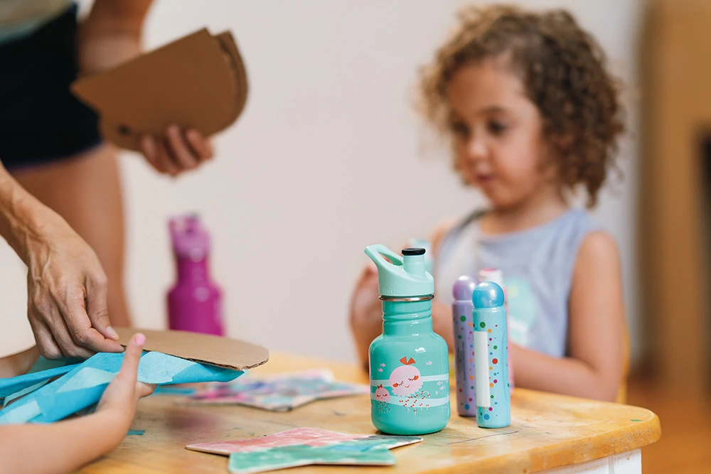 Kids Classic von Klean Kanteen mit fabelhaft bunten Farben und Designs speziell für Kinder entwickelt. Die robuste Flasche mit 355 ml Volumen und Sport Cap sollte bei keinem Ausflug fehlen. Farbe, Form und Größe sind wie für Kinder gemacht. Überrasche Deine Kleinen zum Geburtstag oder zur Einschulung mit dieser tollen Trinkflasche! Material und Herstellung sind umweltfreundlich und nachhaltig. Der Edelstahl und der Kunststoff sind BPA-frei, sowie geruchs- und geschmacksneutral. Das Sport Cap ist spülmaschinengeeignet und somit schnell zu reinigen. Es ermöglicht einen kleckerfreien und leichten Trinkfluss – aber bitte nicht liegend transportieren, da es nicht auslaufsicher ist. Am besten die Flasche mit Sport Cap immer separat mitführen, da auch Erschütterungen an der Lüftungs-Dichtung zu Flüssigkeitsverlust führen können. Mit einem Loop Cap aus Kunststoff oder Edelstahl ist die Flasche auslaufsicher. Die Flasche mit den abgerundeten Ecken ist ebenfalls schnell zu reinigen und somit immer griffbereit. Mit einem Karabinerhaken kannst Du die Flasche einfach an Rucksack, Kleidung der Kinderwagen befestigen, somit hast Du die Flasche immer dabei! Ein treuer Begleiter, der die Umwelt schont und Deine Kids immer mit ausreichend Flüssigkeit versorgt.