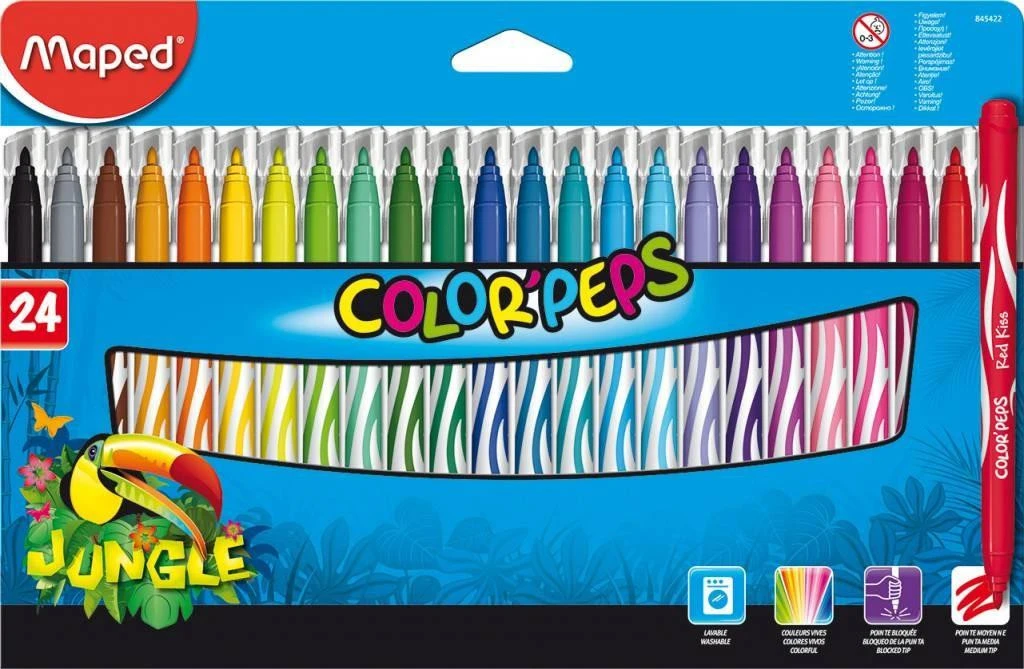 Endlich kein Versteckspiel mit den Kappen! Mit Jungle Innovation stehen die Filzstifte in einem Pop-Up-Sockel und verlieren ihre Kappen nicht. Somit sind sie gut aufgehoben, und halten länger!