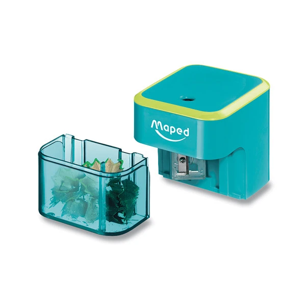 Batteriebetriebener Bleistiftspitzer für Standard-Bleistifte. 4 Batterien, Typ LR6 (AA). Herausnehmbare Abfallschale. Einfach und schnell zu bedienen. Kompakt und stabil.