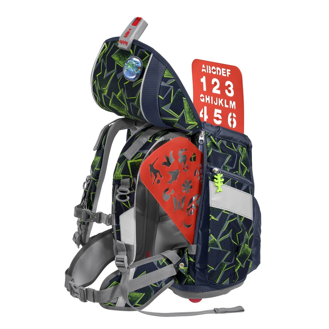Mit dem EASY GROW SYSTEM lässt sich die Höhe der Schultergurte sowie die Rückenlänge des Schulranzens direkt auf dem Kinderrücken individuell anpassn – von 100 bis 150 cm Körpergröße. Die Anatomisch geformten Schultergurte sorgen für einen optimalen Sitz sowie bequemen Tragekomfort, auch bei langen Schulwegen. Die höhenverstallbare Brustgurt sowie der Hüftgurt stellen sicher, dass das Gewicht des Schulranzens von den Schultern genommen und auf den ganzen Körper verteilt wird. Über den ganzen Ranzen verteilt befinden sich reflektierende Elemente aus hochwertigem Material – für bessere Sichtbarkeit und damit Sicherheit im Dunkeln und im Straßenverkehr.