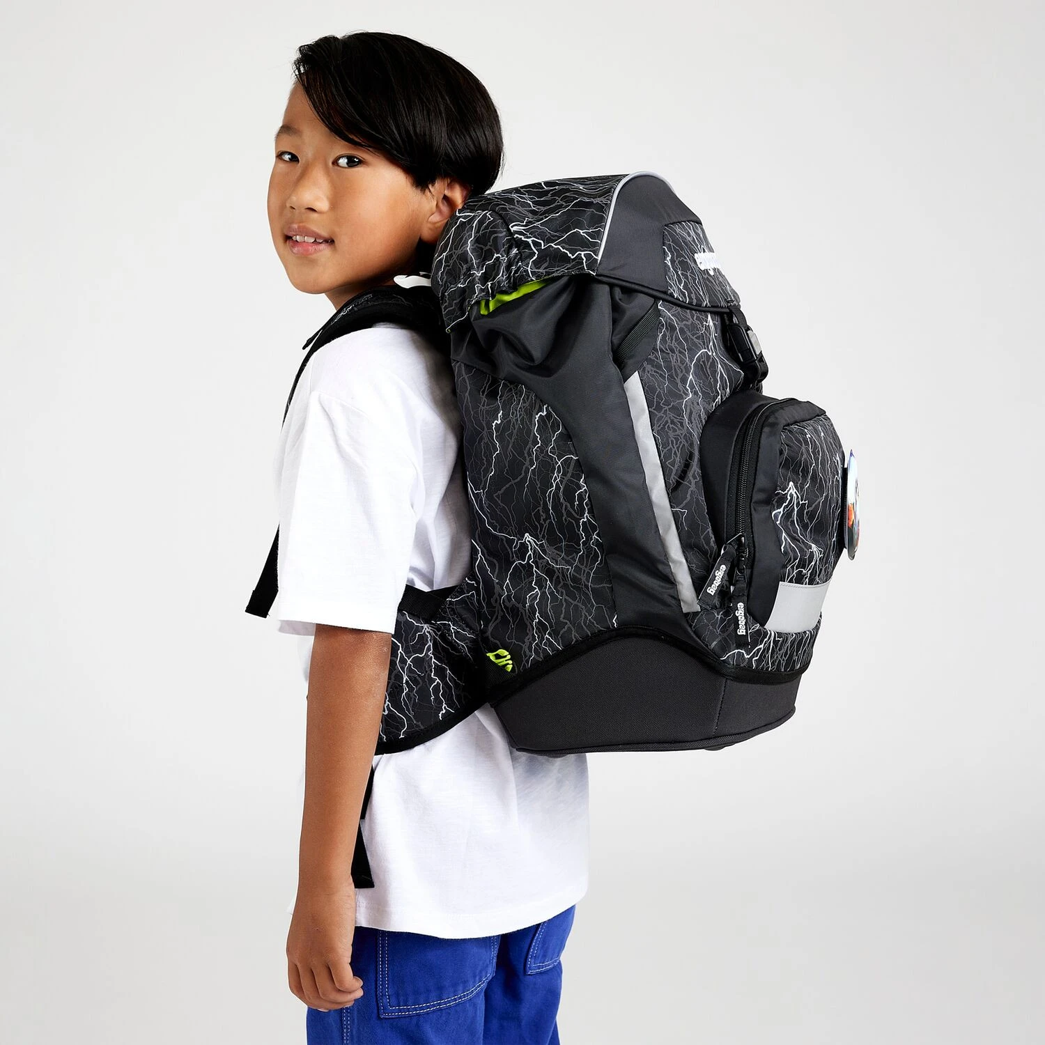 Durch die reflektierenden Prints strahlen die Schultaschen besonders stark, wenn sie im Dunkeln angeleuchtet werden. Die ergobag REFLEX GLOW-Edition verzaubert und setzt eure Superkräfte frei.