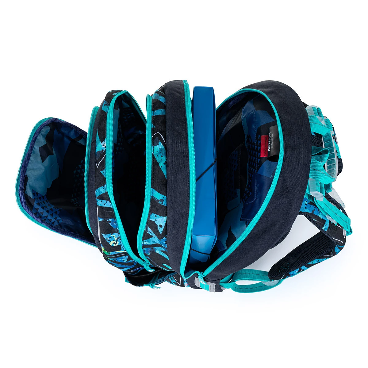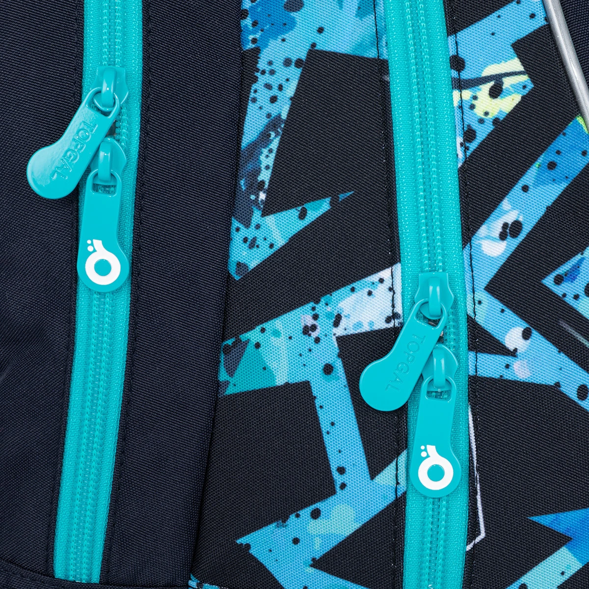 Die beiden großen Hauptfächer des Rucksacks halten alles Notwendige zusammen. Die hintere Kammer ist schmaler als die vordere, wir empfehlen, das schwerste Material hineinzulegen und die Vorderseite zu entlasten. In dem vorderen, breiteren Fach, befindet sich eine Netztasche mit Reißverschluss und ein Namensschild. An der Vorderseite des Rucksacks befindet sich eine praktische tiefe Tasche, um beispielsweise einen Snack oder ein PENN 21020 Federmäppchen im gleichen Design zu verstauen. In der Tasche befindet sich auch ein abnehmbarer Karabiner für einen Schlüssel.