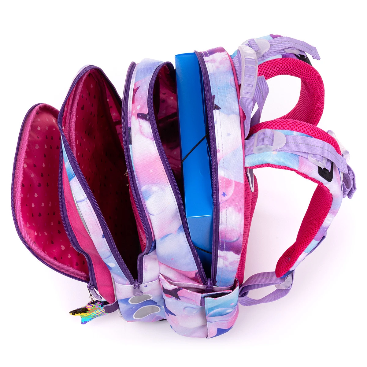 Ideal für Schüler aus der Ersten Klasse. Dank zwei großer Fächer passt der Rucksack mindestens in die 3. Klasse der Grundschule! Außerdem ist der Rucksack ultraleicht, er wiegt kein Kilogramm! Wir können ihn daher sogar für die kleinsten Schüler unter 120 cm empfehlen.