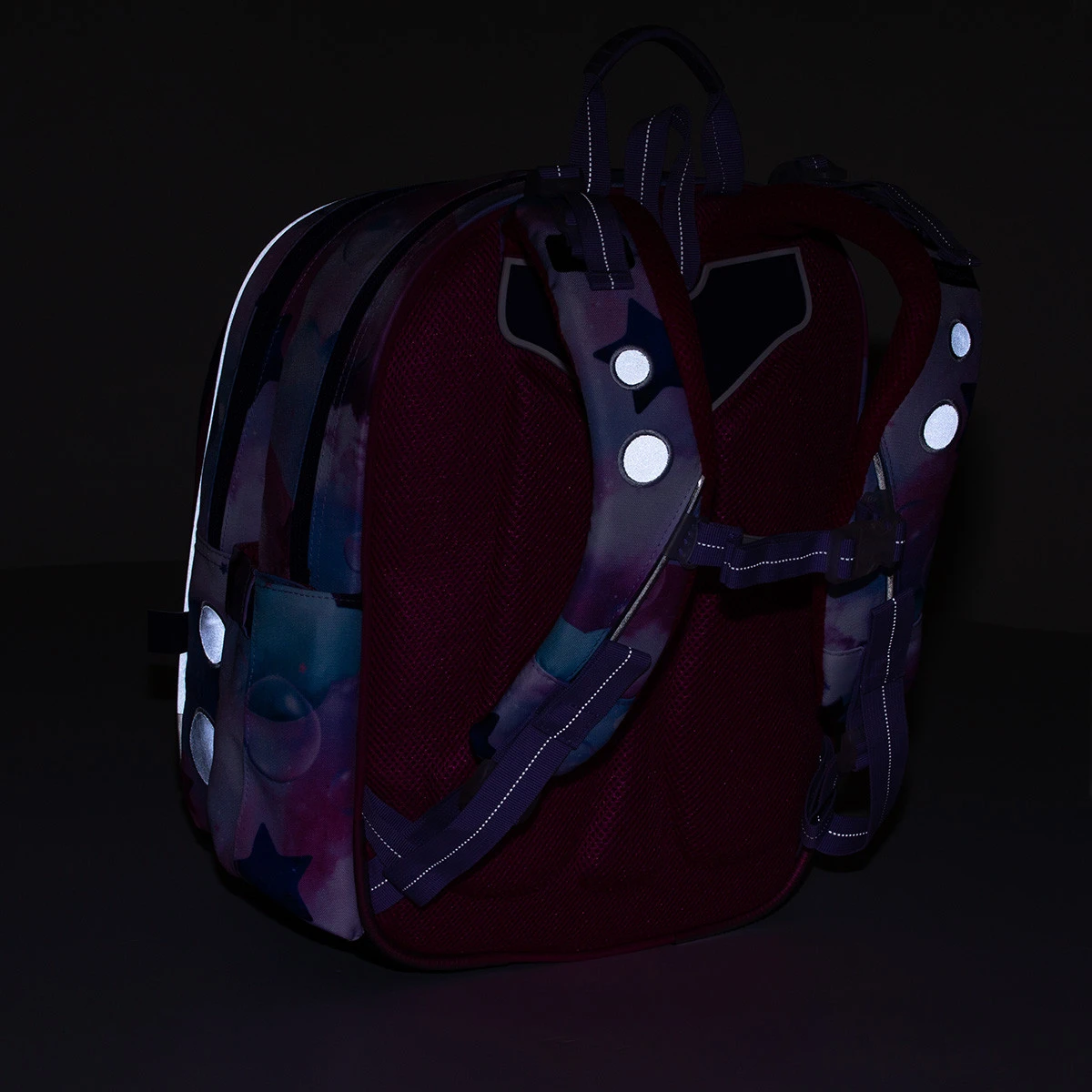 Die Rückseite des Rucksacks ist aus weichem Formschaum geformt, was den Rucksack so leicht macht. Die Schultergurte sind gepolstert, anatomisch geformt und können mit Schnallen unten vertikal und oben nach hinten geschnallt werden. – Sie fallen auch im Winter, wenn Kinder Jacken tragen nicht von den Schultern, keine Sorge. Die Schultergurte sind noch dazu mit einem höhenverstellbaren Brustgurt ausgestattet.