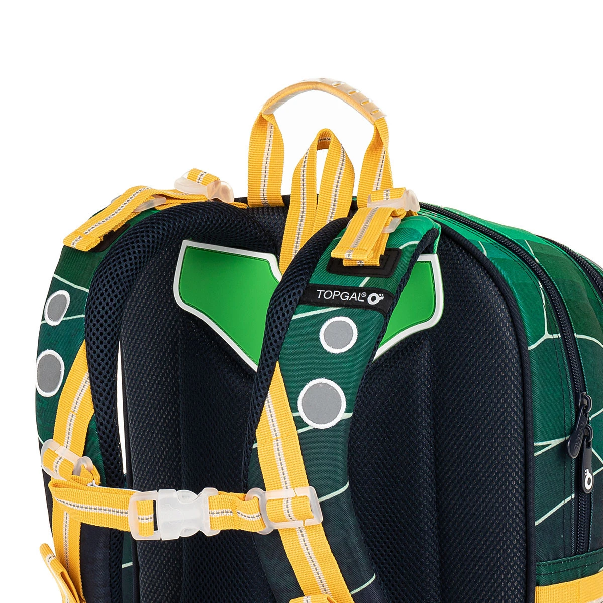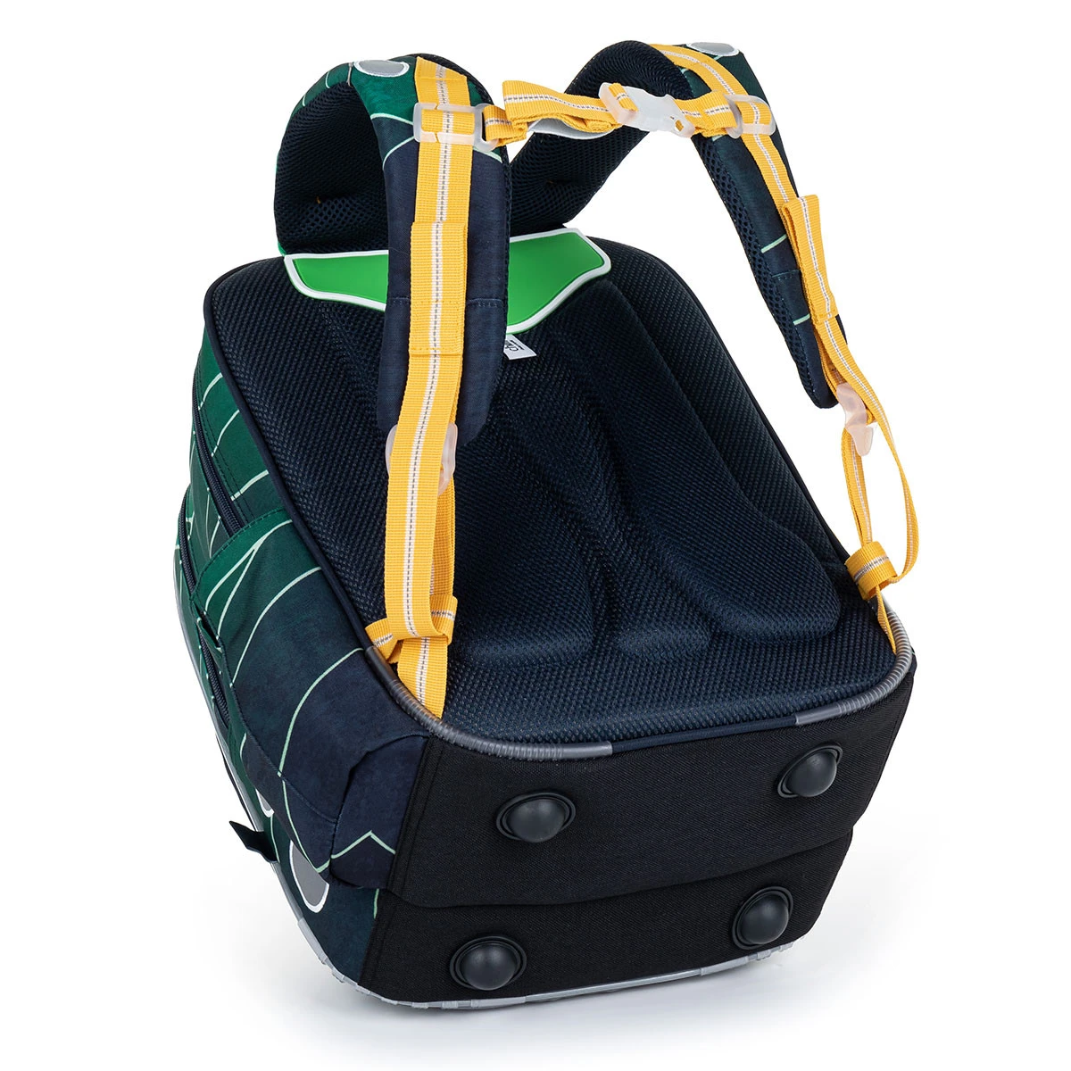 Die Rückseite des Rucksacks ist aus weichem Formschaum geformt, was den Rucksack so leicht macht. Die Schultergurte sind gepolstert, anatomisch geformt und können mit Schnallen unten vertikal und oben nach hinten geschnallt werden. – Sie fallen auch im Winter, wenn Kinder Jacken tragen nicht von den Schultern, keine Sorge. Die Schultergurte sind noch dazu mit einem höhenverstellbaren Brustgurt ausgestattet.