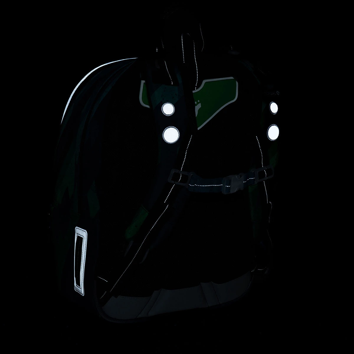 – reflektierende Elemente – an der Vorderseite und den Seiten des Rucksacks, an den Schultergurten