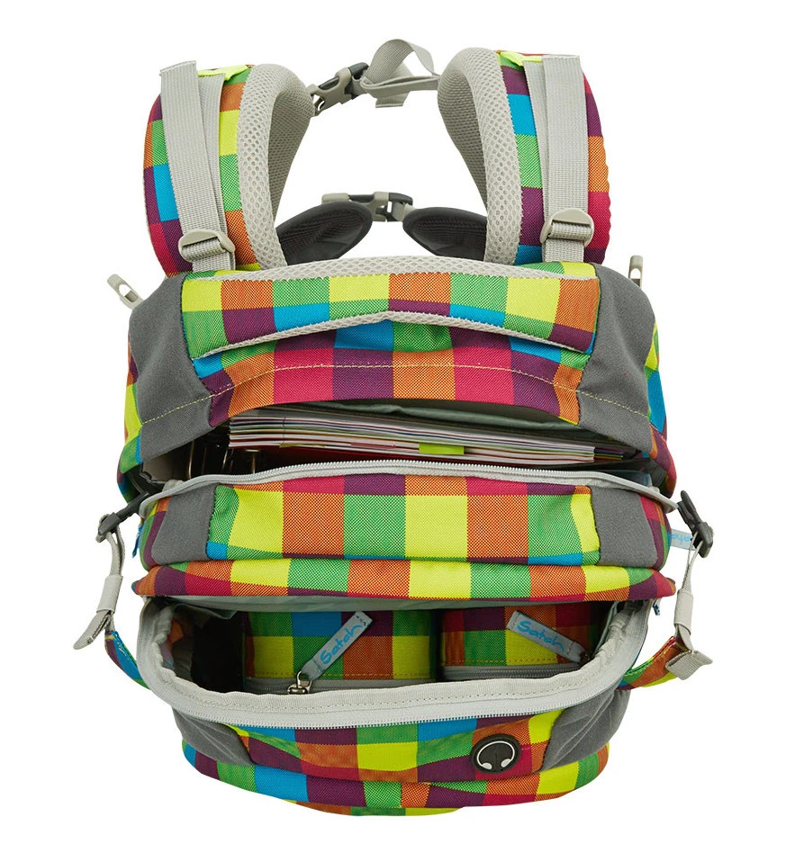 Ergobag satch entlastet und wächst mit: Aus dem Bergsport auf den Schülerrücken: Das satch Tragesystem garantiert die Verlagerung des Gewichts von den Schultern auf den stabilen Beckenbereich. Passgenaue Einstellung von 1,40 m – 1,80 m.
