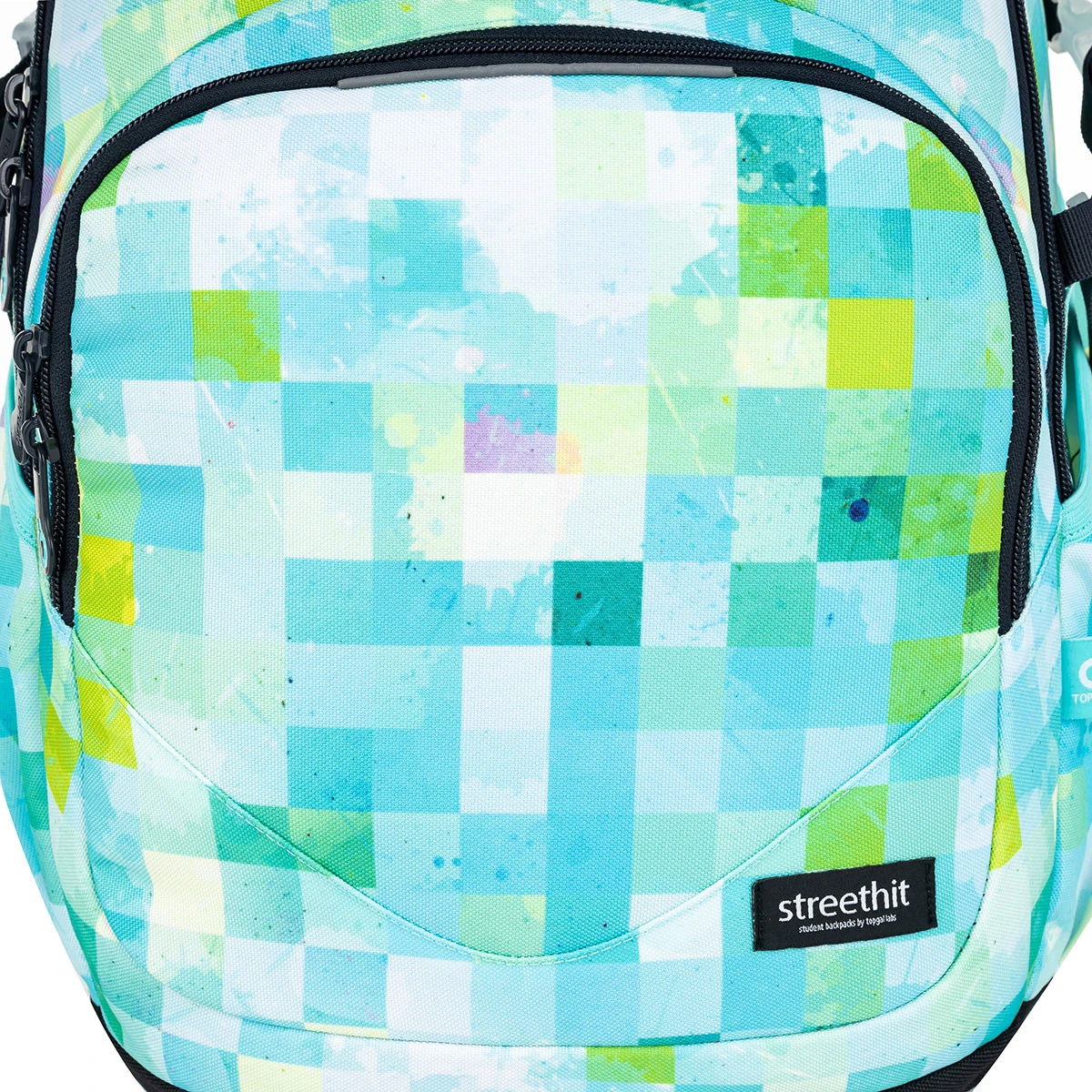 In die Hauptkammer packen Sie alles, was Sie für Schule oder Freizeit brauchen. Im Inneren der Kammer befindet sich eine gepolsterte Laptoptasche, eine kleine Reißverschlusstasche und ein Karabiner für Schlüssel, der an langen Federn angenäht ist. Der Rucksack hat noch eine weitere große Tasche, die am Rücken versteckt ist. Sie ist ideal zum Tragen von Akten, Ordnern oder A4-Notizblöcke. Der Zugang zur Tasche erfolgt über einen Reißverschluss an der Seite des Rucksacks.