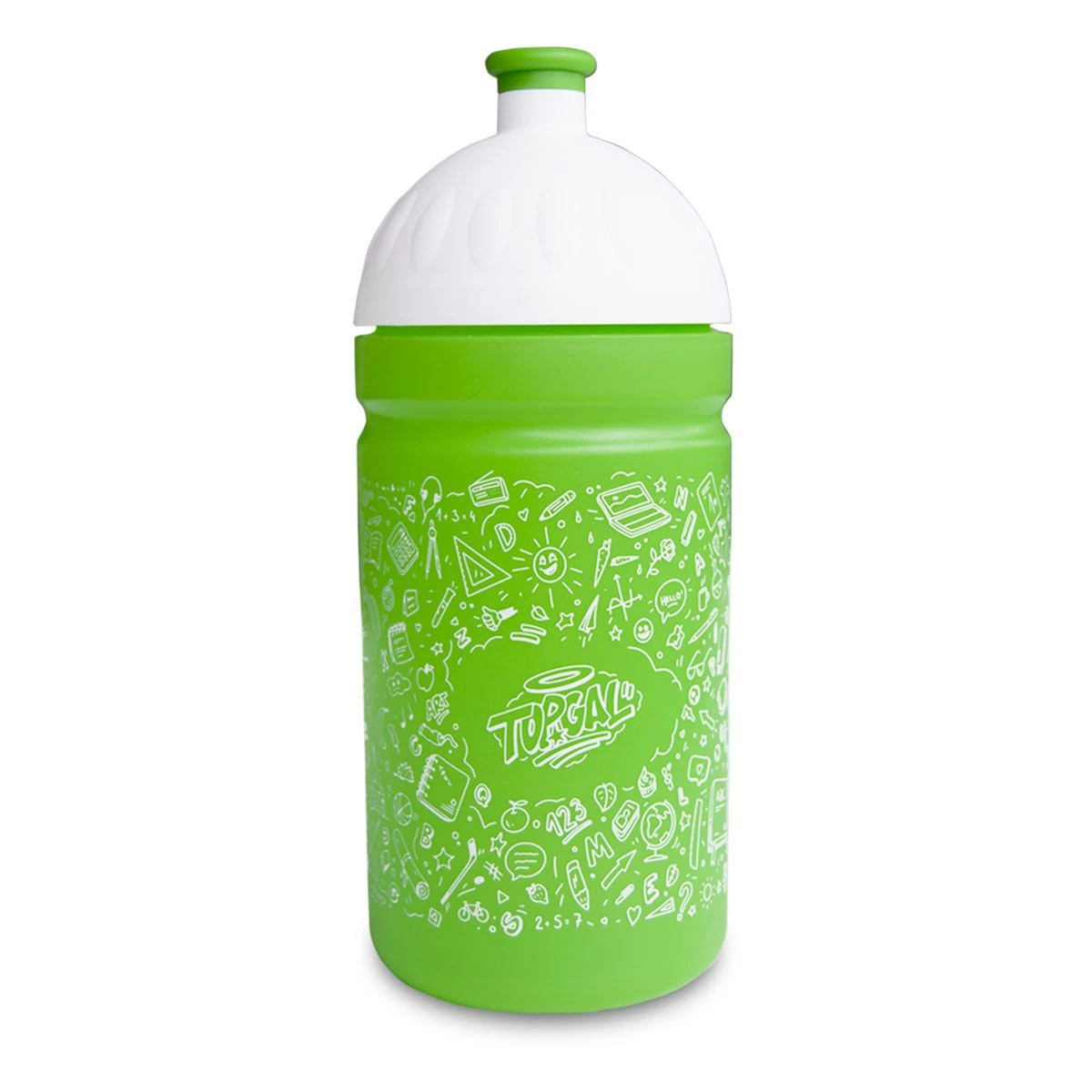 Trinkflasche für Schulkinder und Sportler mit einem Volumen von 0,5 Litern. Die Flasche ist passend für alle Arten von Getränken und ist lebensmittelecht, man kann sie gefahrlos in der Spülmaschine waschen. Sie ist aus halbtransparentem Kunststoff hergestellt. Material: Flasche und Verschluss – Polypropylen, Verschluss – Elastomer, Dichtung – Silikon. Die gedruckten Farben sind absolut sicher für den Kontakt mit Lebensmitteln. Das Produkt beinhaltet keine Schwermetalle, Phthalate, Weichmacher oder Bisphenol A (BPA-frei).