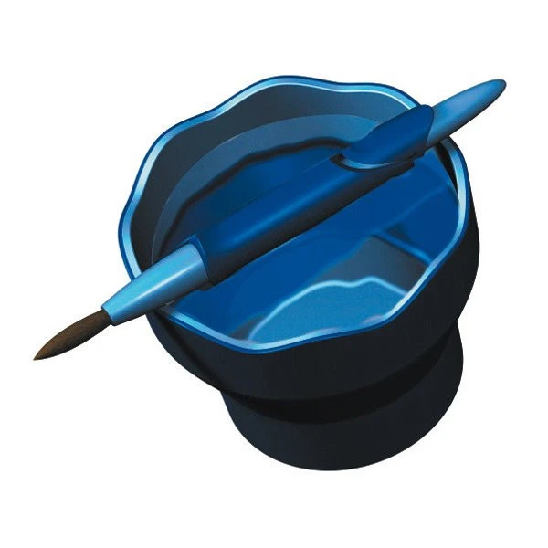Blauer Wasserbecher im praktischen und atraktiven Design. Der Becher verfügt über einen praktischen Klappmechanismus zum Aufbewahren und Transportieren. Der Wellenrand dient zur Aufbewahrung von Pinseln, damit der Arbeitsplatz sauber bleibt. Er lässt sich leicht reinigen und ist zudem spülmaschinenfest. Sehr robustes, rutschfestes Material.